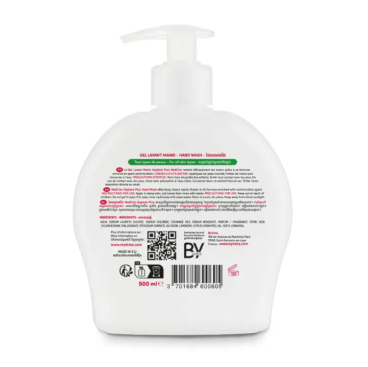 Medclan Hygiene Plus Hand Wash effectively cleans and takes care of the hands thanks to its formula enriched with glycerin, known for its moisturizing properties. This formula contains an antimicrobial agent for optimal cleaning.