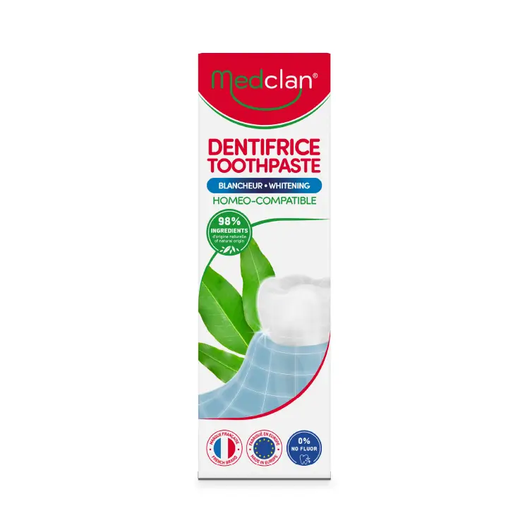 Medclan Whitening Homeo-Compatible Toothpaste provides natural and gradual whitening of teeth.
